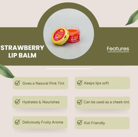 Say hello to soft, hydrated, and naturally tinted lips with Narayani Universal Bliss Strawberry Lip Balm! Infused with the goodness of strawberries, this nourishing balm soothes, hydrates, and adds a subtle pink tint, making your lips look effortlessly fresh and plump. Loved by all age groups, especially kids, this chemical-free, gentle formula is perfect for daily use.